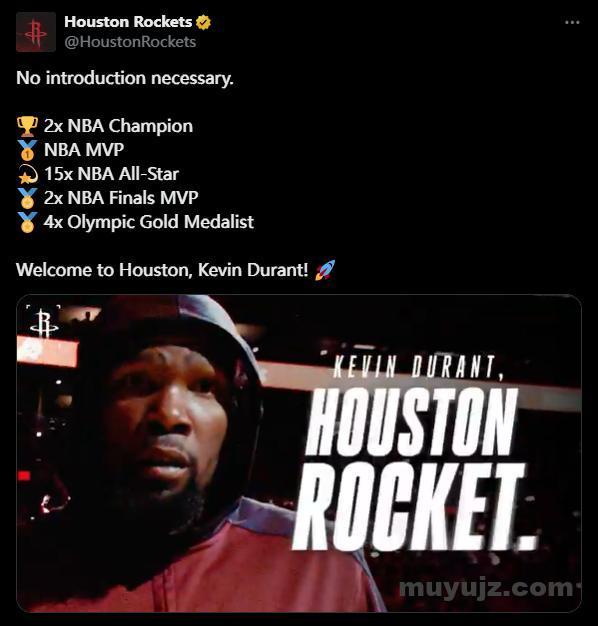 火箭官方写道: 无需过多介绍。 两届NBA总冠军 1次NBA常规赛最有价值球员 十五次入选NBA全明星 两次N […]