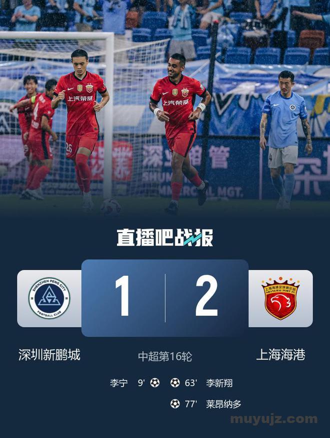 直播吧6月30日讯 北京时间6月30日20:00,中超第16轮,深圳新鹏城坐镇深圳市体育中心体育场迎战上海海港。上半场埃杜-加西亚助攻李宁破门,古斯塔沃中横梁,深圳新鹏城暂1-0上海海港;下半场莱昂纳多先是助攻李新翔扳平比分,随后自己攻门得手,最终上海海港2-1逆转深圳新鹏城,联赛三连胜距榜首4分,仍然排在积分榜第四位。