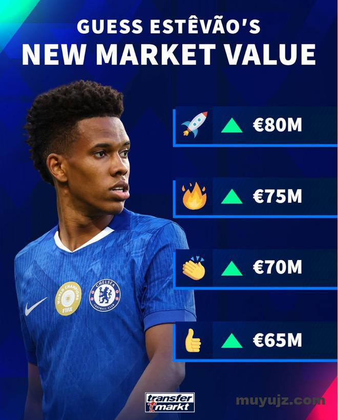 德转将在12月9日对英超球员的身价进行更新。今日德转预热切尔西边锋埃斯特旺身价上涨,球员最低涨至6500万欧,最高8000万欧。