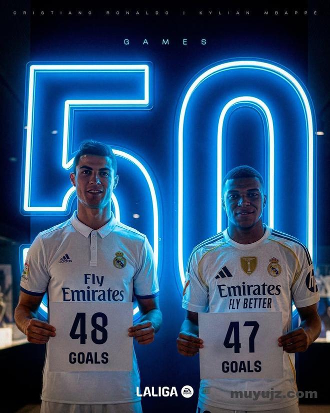 姆巴佩在上周末联赛达成西甲50场里程碑,这位皇马前锋西甲生涯前50次出场打入47球,仅次于C罗。