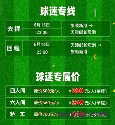 近日,中远海运客运官方宣布,8月16日,大连英博客场战天津津门虎,将开启跨渤海的远征专线。