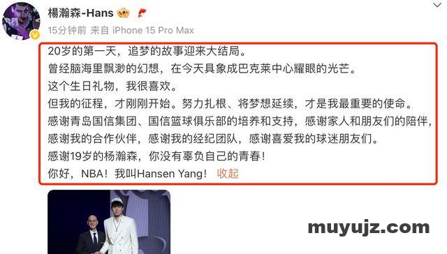直播吧6月26日讯 NBA选秀大会,中国球员杨瀚森在首轮第16顺位被开拓者选中。 杨瀚森接受了孟超的采访。谈到 […]