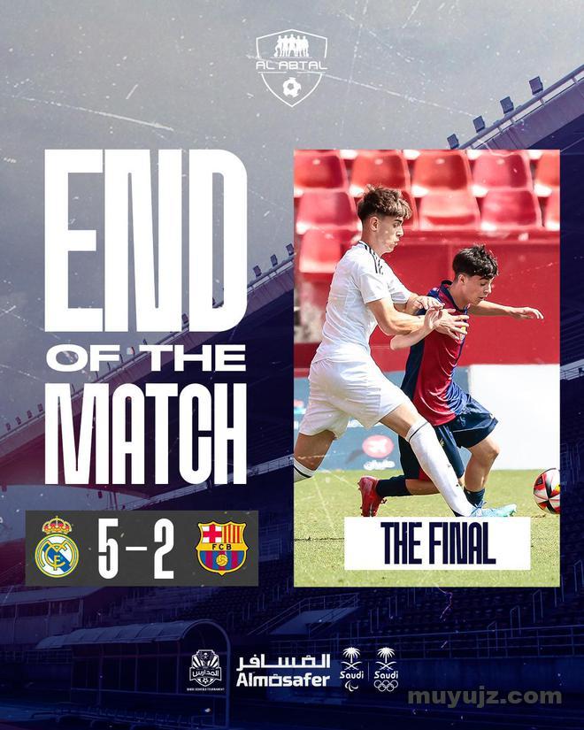沙特当地时间6月4日,由沙特主办的第五届AI Abtal杯决赛落下帷幕,皇马U16梯队5-2战胜巴萨U16梯队赢得冠军。