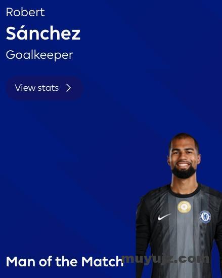 英超第22轮,切尔西主场2-0击败布伦特福德,此役完成6次扑救的切尔西门将罗伯特-桑切斯当选全场最佳球员。
