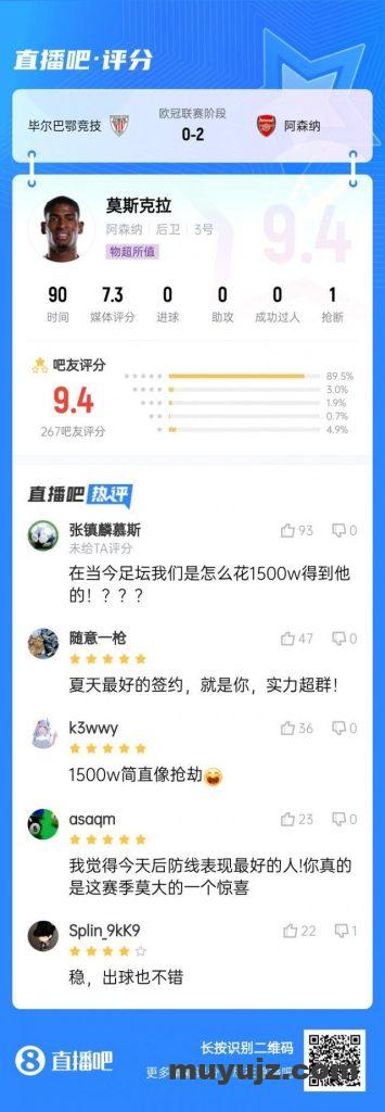 凌晨欧冠首轮,阿森纳客场2-0战胜毕尔巴鄂竞技,本场比赛莫斯克拉与加布里埃尔搭档中卫,前者交出了满分表现。枪手 […]