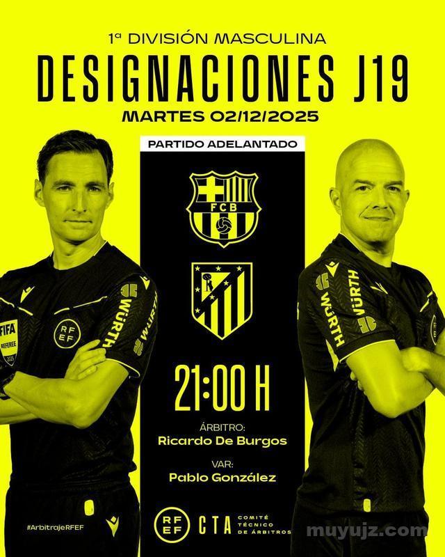 官方消息,西甲第19轮巴萨vs马竞裁判名单公布,布尔戈斯担任主裁,巴勃罗-冈萨雷斯担任VAR。