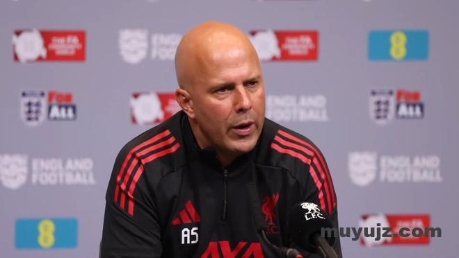 率队在2025年英格兰社区盾杯点球大战不敌水晶宫屈居亚军之后,利物浦主教练斯洛特出席了新闻发布会。