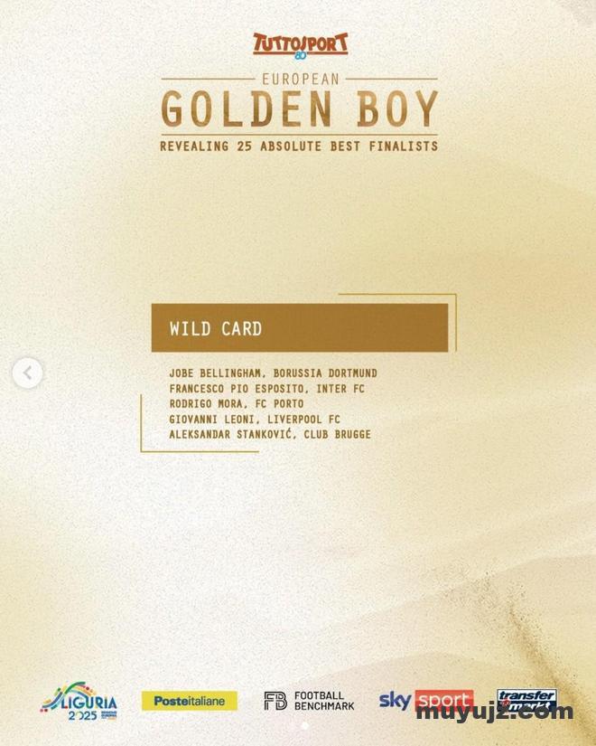 《都灵体育报》公布了2025年金童奖25人候选,杜埃、赫伊森、居莱尔、库巴西、伊尔迪兹等新星在列。