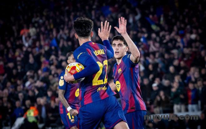 第30分钟,年仅17岁的亚马尔左路连过两人后横传,贝尔纳尔门前冷静推射破网,1-0!总比分改写为1-4,沉寂已久的主场再度沸腾。