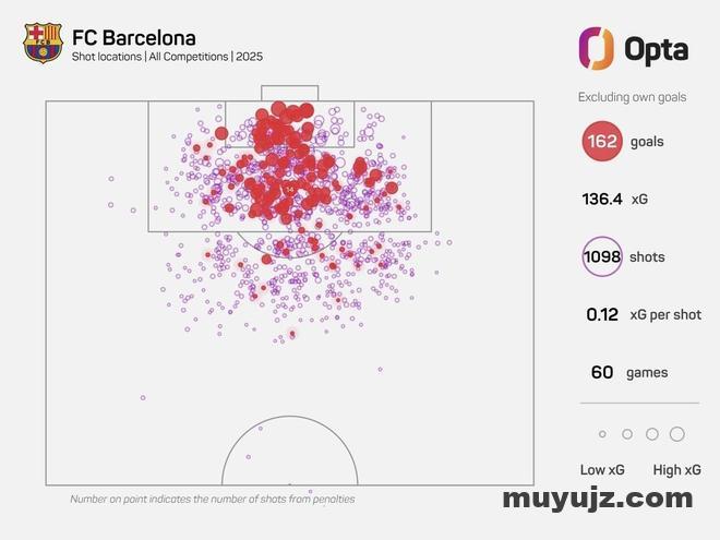 根据Opta统计的数据,巴塞罗那在2025年各项赛事(包括乌龙球)的60场比赛中攻入169球,创造了西甲球队在没有梅西或C罗的情况下,单年进球数的新纪录。