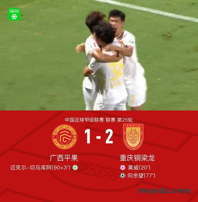 北京时间10月5日中国足球甲级联赛第25轮,广西平果主场对阵重庆铜梁龙。迈克尔-切乌库阿点射破门,黄威自摆乌龙,向余望建功。最终比分广西平果1–2重庆铜梁龙。