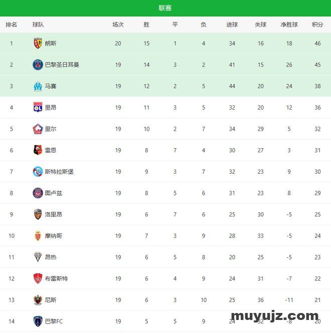 这样一来,朗斯在20轮过后取得15胜1平4负,积46分,反超巴黎圣日耳曼,暂时登顶积分榜。虽然朗斯的进球数仅34粒,远低于巴黎41球和马赛44球,但他们的防守效率极高仅丢16球,比大巴黎多一球,这是他们能时常登顶榜首的原因之一。