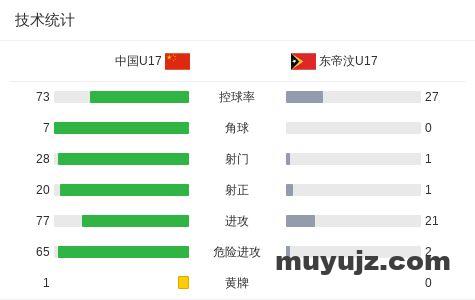 北京时间11月24日U17亚洲杯 预选赛 第2轮,中国U17对阵东帝汶U17。本场比赛谢晋、帅惟浩、赵松源上演帽子戏法,张伯霖梅开二度,王贺毅、万项、张旭尧破门。最终国少14-0血洗东帝汶U17。