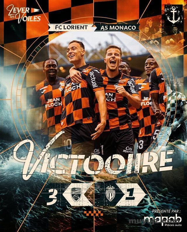 直播吧9月28日讯 法甲第6轮比赛,洛里昂主场3-1击败摩纳哥。