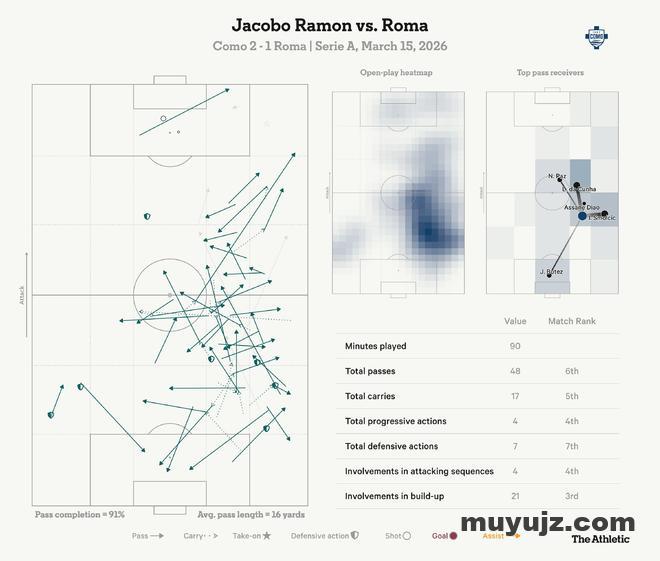 在对阵罗马的上半场,法布雷加斯希望他的中卫哈科沃-拉蒙把他的盯防对象斯蒂芬-埃尔沙拉维带到他不想去的位置。拉蒙移动到中场。他也曾上提到右路高位。这造成的混乱让科莫获得了优势。拉蒙在高位赢得了二次球权和对抗。他还作为多出来的一个人参与进攻。“今天管用的明天可能就不管用了,”法布雷加斯坦言。但对罗马,它管用了。