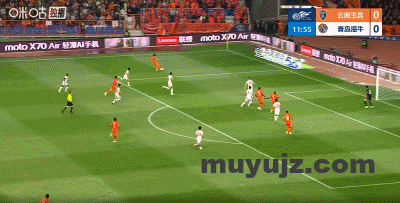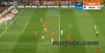 第13分钟,杨梓豪传中,克莱伯门前抢点得分,云南1-0领先海牛