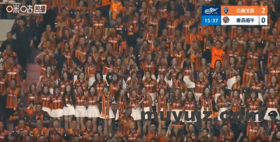 球队16分钟两球领先,云南球迷看台上欢乐庆祝